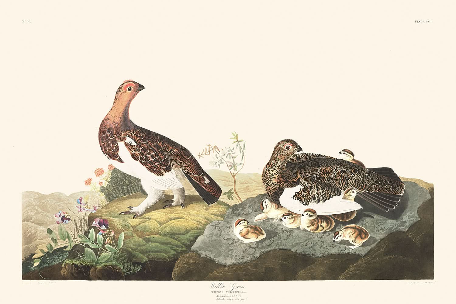 Lagopède des saules ou grand lagopède par John James Audubon, 1827
