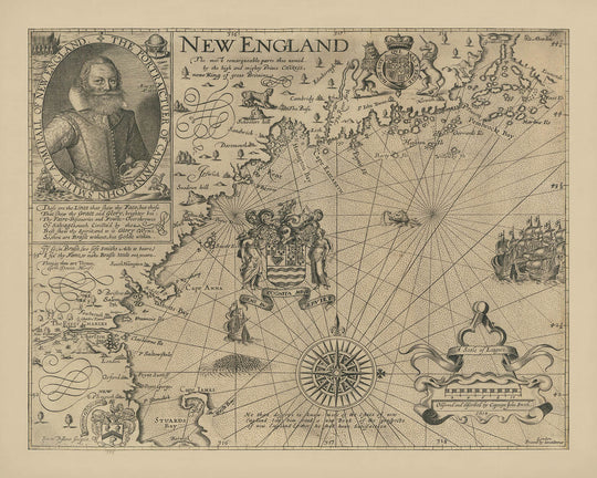 - Introduit le nom "Nouvelle-Angleterre" et inclus des noms de lieux fournis par Charles, prince de Galles (plus tard Charles I)