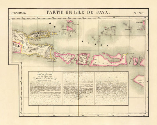 Ancienne carte de Bali, Lombok, Komodo, Sumbawa et d'une partie de Java par Delavault, 1827: Surabaya, Denpasar