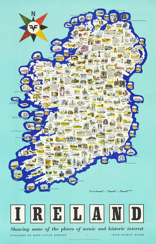 La carte a été imprimée par Browne and Nolan Limited à Dublin, un témoignage du savoir-faire et de l'attention aux détails de l'époque. Elle sert à la fois de guide fonctionnel et d'expression artistique, reflétant les aspirations touristiques de l'époque. L'Office du Tourisme Irlandais, connu sous le nom de Bord Fáilte Éireann, cherchait à capturer l'imagination des voyageurs, les encourageant à découvrir les contes enchanteurs et les panoramas de l'Irlande.