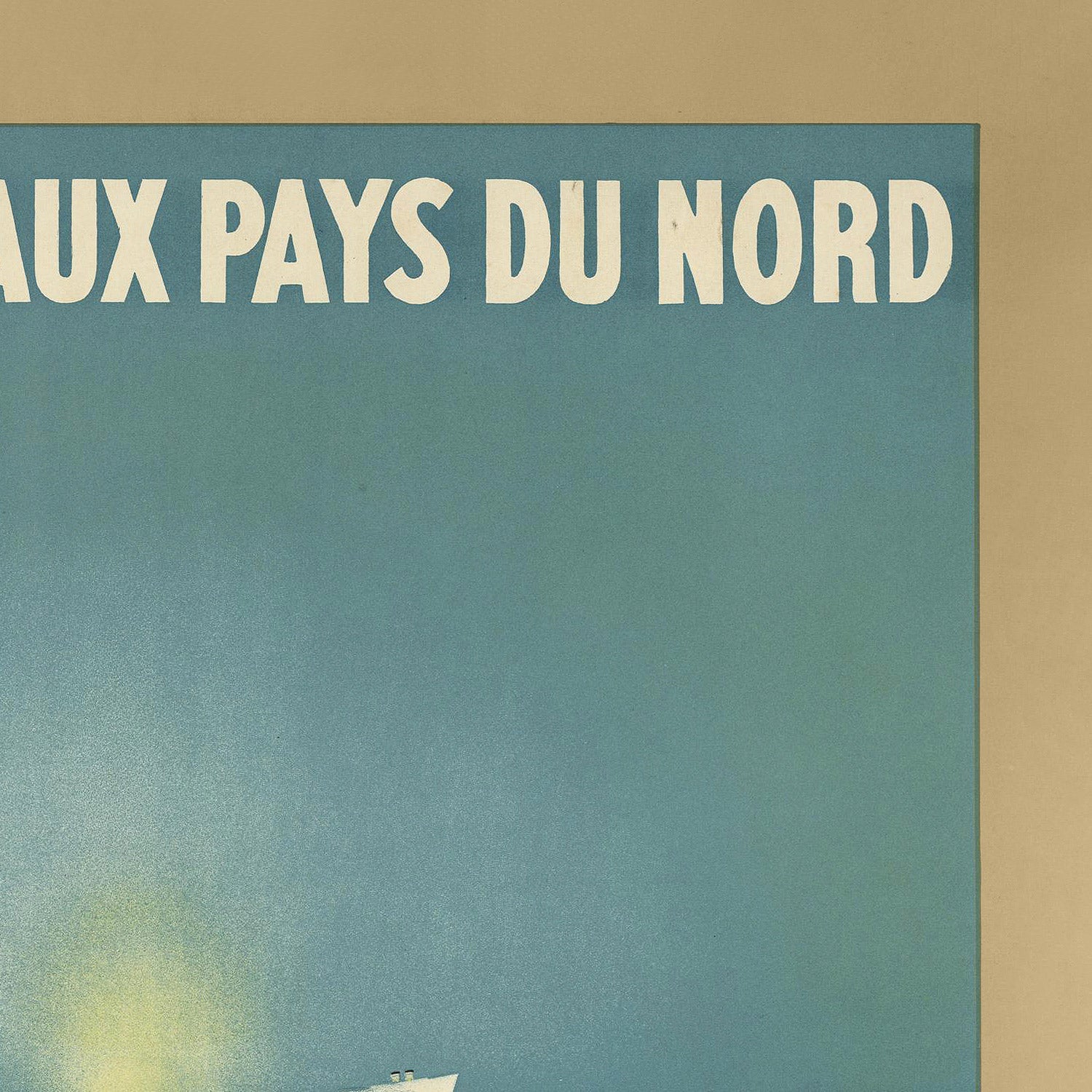 Visually, the poster’s restrained palette does the heavy lifting: whites and deep marine blues communicate salt air and open water, while accents of yellow suggest a high-latitude sun cutting through crisp northern skies. The typography is assertive yet elegant, typical of 1930s poster craft, and the simplified forms convey both the mass of an ocean liner and the clean planes of northern coastlines without unnecessary detail. It’s precisely this graphic economy—flat color fields, taut alignment, and a confident headline—that makes the piece so timeless on a modern wall.
