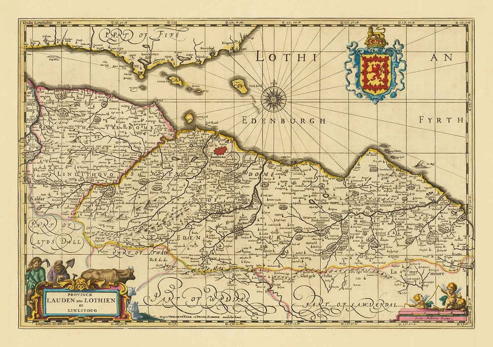 Cette carte s'étend à peu près de Linlithgow à l'ouest et Dunglass à l'est. Aujourd'hui, cela couvrirait à peu près tout le West Lothian, le Midlothian et l'East Lothian.