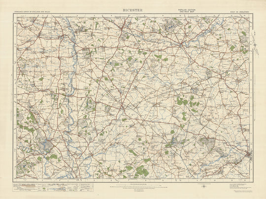 - Comté historique : Bicester, le point central de cette carte, est situé dans le comté historique d'Oxfordshire. Cela ajoute à l'importance historique de la carte, car elle fournit une représentation visuelle des limites du comté et de ses relations avec les zones voisines.
