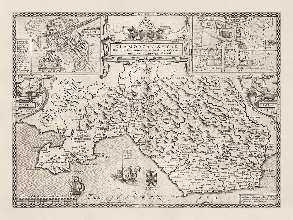 De nombreuses villes, villages et cités de Glamorgan sont déjà visibles sur cette carte, y compris les villes de Swansea et Cardiff. Port Talbot n'existait pas encore sous ce nom - mais son prédécesseur, Aberavon, et sa longue plage sont ici.