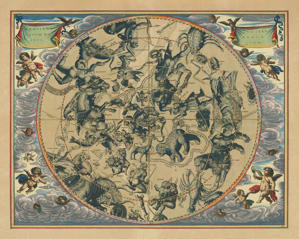 Carte céleste des constellations du Nord par Andreas Cellarius, 1661