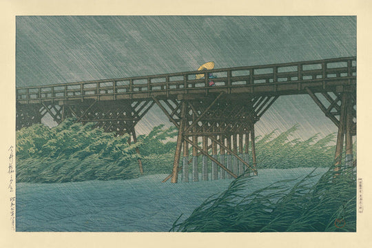 Pluie du soir au pont Imai par Hasui Kawase, 1935