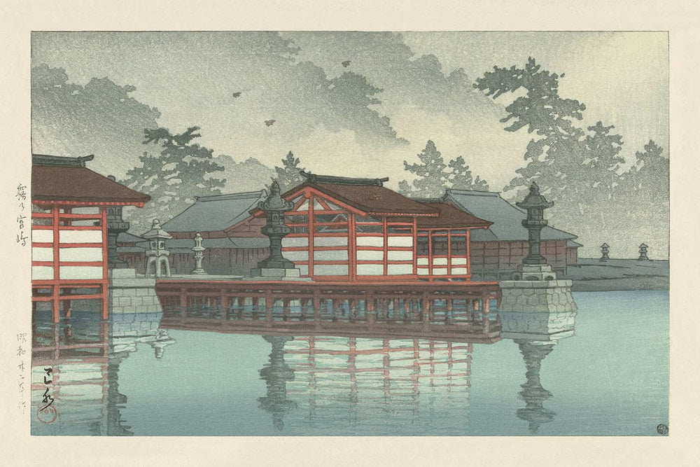 Miyajima dans le brouillard de Hasui Kawase, 1947