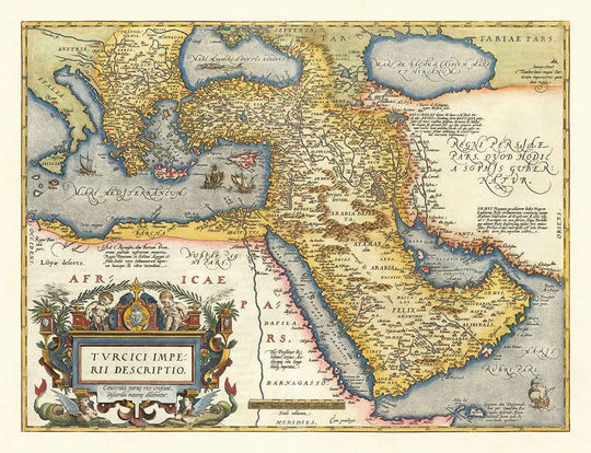 Old Ottoman Empire Map, 1584 par Ortelius: Turquie, Arabie saoudite, Moyen-Orient, Iran, Israël, Grèce, mer Rouge, Afrique