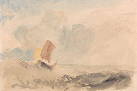 Une œuvre maritime, Une mer agitée avec un bateau de pêche, créée avec expertise par le célèbre peintre britannique JMW Turner en 1820, est une peinture remarquable qui met en valeur sa capacité extraordinaire à capturer l'essence de la nature. Turner, souvent salué comme le peintre de la lumière, était une figure clé du mouvement romantique, connu pour sa colorisation expressive et ses paysages imaginatifs.