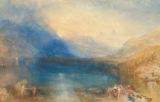 Joseph Mallord William Turner, connu simplement sous le nom de Turner, est largement célébré comme l'un des peintres de paysage les plus influents de Grande-Bretagne. Actif durant l'ère romantique, Turner est renommé pour son approche innovante de la représentation de la lumière, de la couleur et de l'atmosphère, des qualités qui lui ont valu un héritage durable dans l'histoire de l'art. "Le Lac de Zoug" représente un exemple parfait des œuvres tardives de Turner, caractérisées par un style de plus en plus lâche et expressif qui a présagé le mouvement impressionniste.