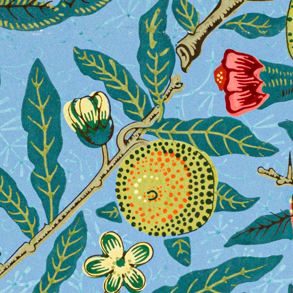 Historically, Fruit was most likely developed as a wallpaper design, though Morris’s patterns frequently migrated across media and could be adapted for carpets, curtains, and other textiles. Its enduring appeal lies in the balance between naturalism and stylization—a carefully ordered field that still feels organic, as if a garden wall had quietly blossomed indoors. The effect shaped generations of interiors, from late-19th-century drawing rooms to today’s calm, craft-oriented spaces.