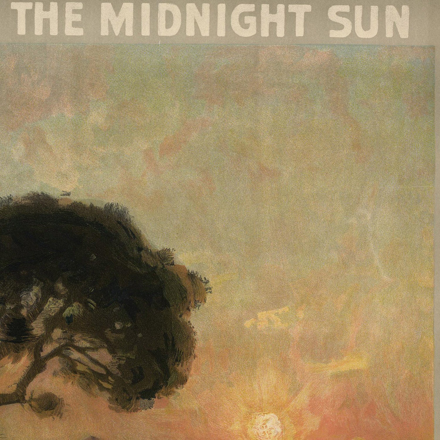 Why this subject matters: the “midnight sun” is one of Norway’s great natural wonders, where above the Arctic Circle daylight lingers through the night for weeks on end. As steamship routes, railways and organized tours expanded, images like this fueled a surge of curiosity about the North. This poster crystallizes that allure—majestic yet intimate, it speaks to travelers who have stood by a still fjord at midnight and watched the horizon smolder rather than set.