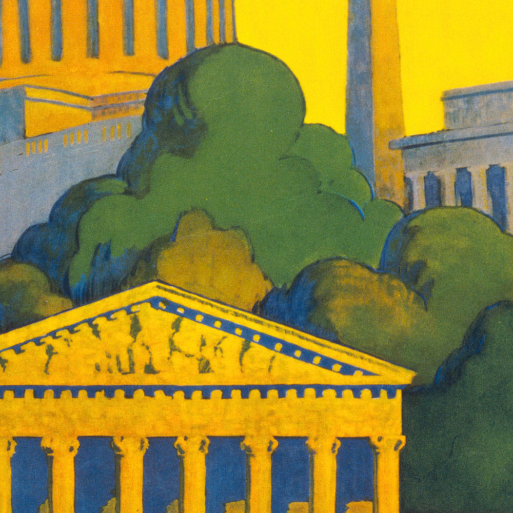 Washington, D.C. Travel Poster: Capitol Building & Lincoln Memorial, the City Beautiful by Grif Teller, 1940