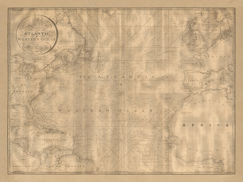 - Une des meilleures cartes au format large de l'Atlantique publiées dans la première moitié du 19ème siècle.