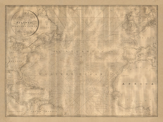 Le principal objectif de la carte est l'océan Atlantique, détaillant l'immense étendue des États-Unis et des Caraïbes aux côtes de l'Europe et de l'Afrique. Elle suit méticuleusement le Gulf Stream, un courant critique pour la navigation, et met en évidence les courants dominants qui étaient essentiels pour les voyages transatlantiques. L'inclusion de ces caractéristiques océanographiques souligne non seulement l'utilisation pratique de la carte pour les marins mais reflète également les connaissances scientifiques de l'époque, en faisant un outil éducatif significatif.
