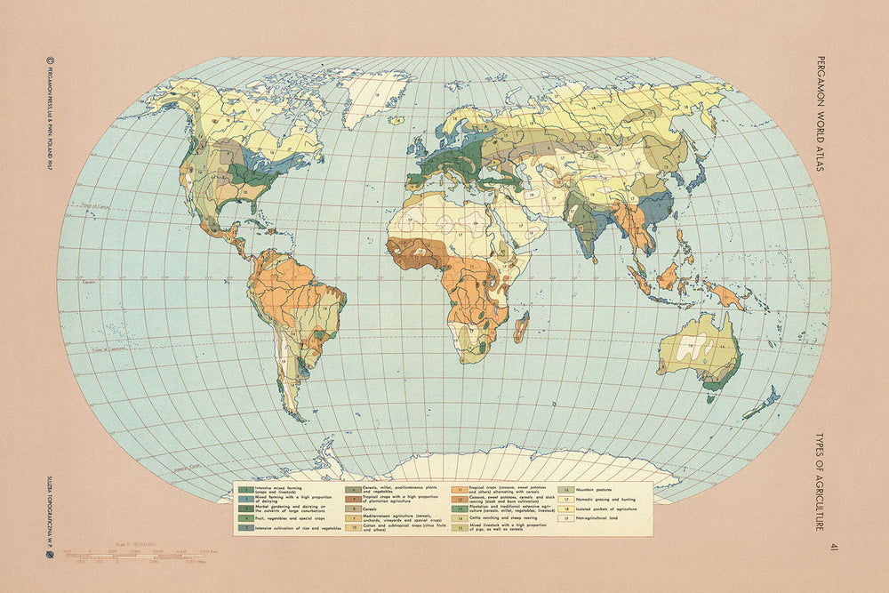 Ancienne infographie de la carte de l'agriculture mondiale, 1967: Utilisation des terres agricoles, Système alimentaire mondial