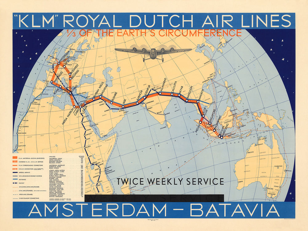 - Nom de la carte : Carte du service hebdomadaire KLM Royal Dutch Airlines Amsterdam-Batavia