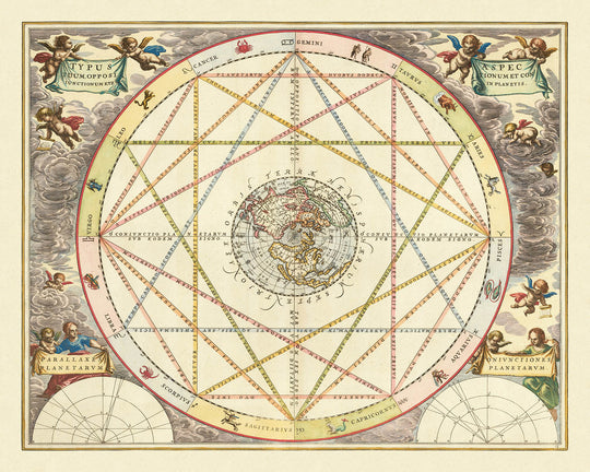 Au-delà de son intrigue cartographique immédiate, cette carte se dresse comme un témoignage de l'importance profonde de l'astrologie à la fin du XVIIe siècle. Le réseau complexe de lignes reliant les signes du zodiaque, les références explicites aux quatre humeurs, et le design harmonieux parlent tous d'une vision du monde dans laquelle la science, l'art et le mysticisme étaient inextricablement liés. Pour le collectionneur avisé, le tableau céleste de Cellarius n'est pas simplement une carte, mais une fenêtre sur les courants philosophiques et artistiques qui ont façonné une époque.