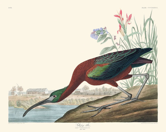 L'art d'Audubon capture l'élégance de l'ibis brillant avec sa représentation vivante. Les riches teintes marron et vert foncé de l'oiseau brillent d'une qualité éthérée. Posséder cette impression invite la sérénité de la nature dans votre espace et sert de point focal saisissant qui célèbre la splendeur de la faune aviaire.