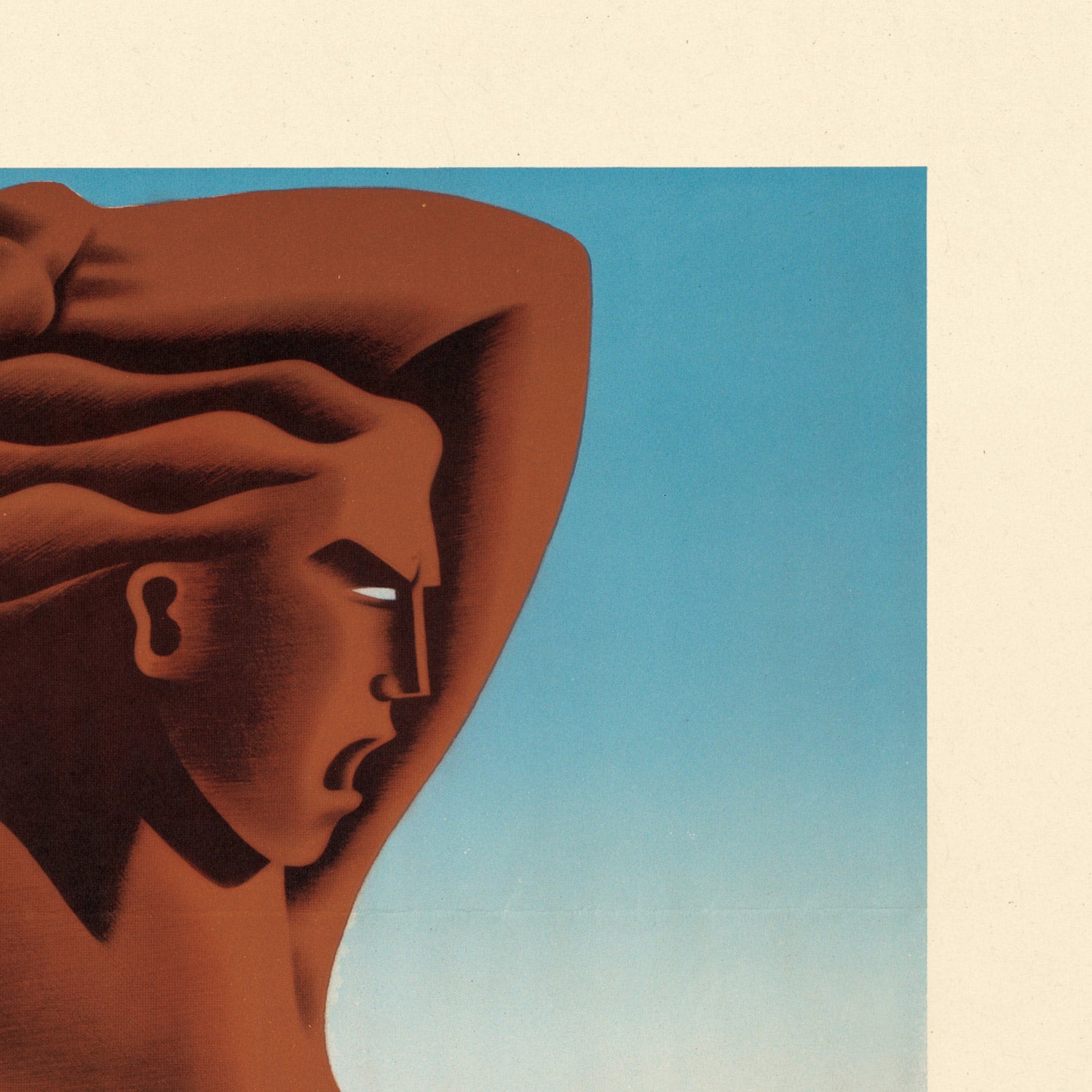 While the original artist’s name has been lost to history, the poster’s authorship is unmistakably rooted in Mexico’s mid-20th-century graphic tradition, when muralist ideals flowed into public posters and travel imagery. The anonymous designer harnesses the era’s heroic scale and clarity—think clean silhouettes, sculptural anatomy, and sweeping vistas—to communicate directly to passersby and visitors alike.