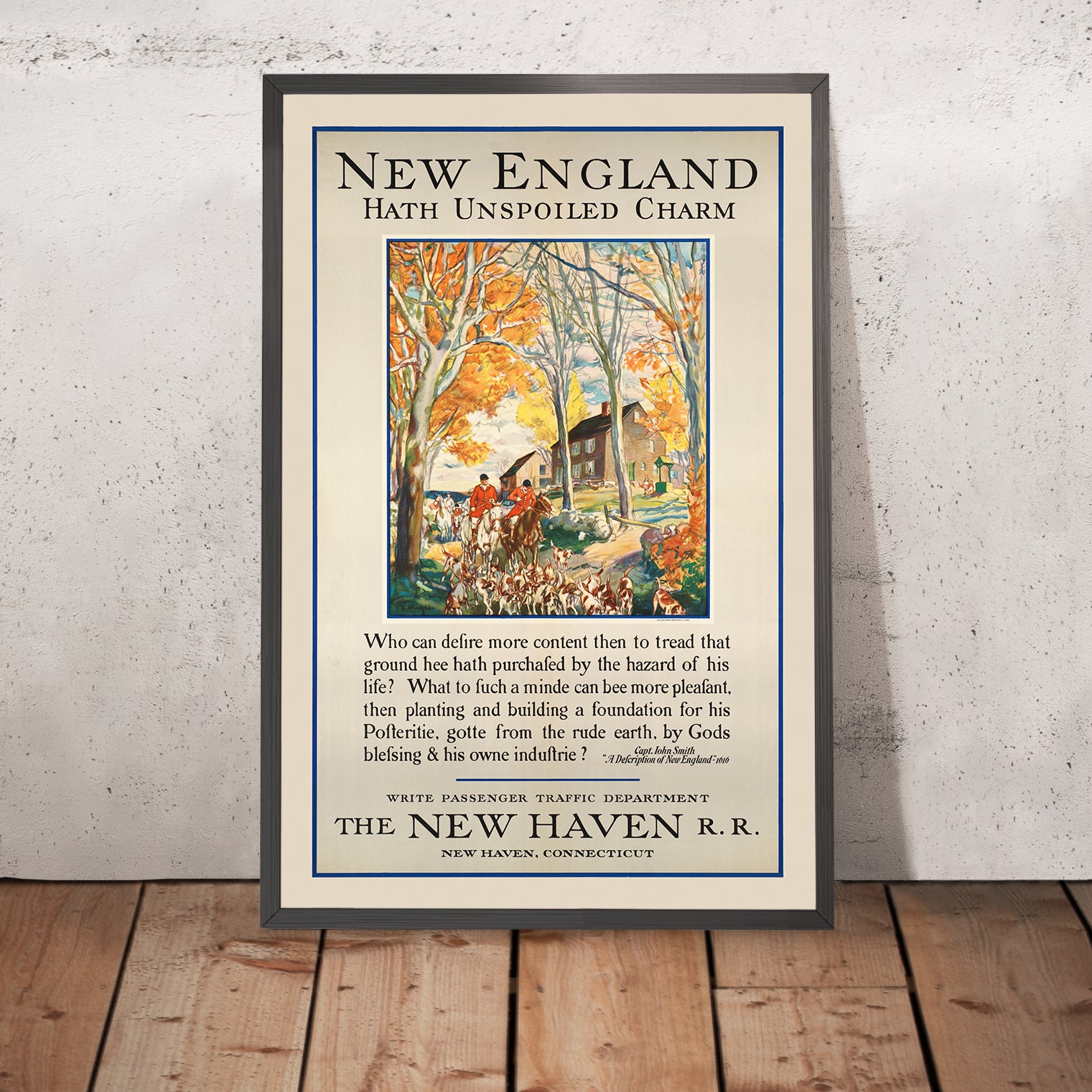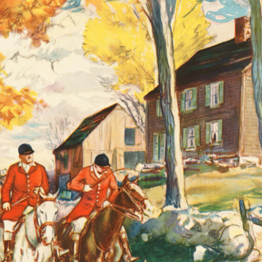 Why this subject endures: the poster captures New England as a place where community and countryside meet—orchards and fields punctuated by well-kept buildings, autumn woods alive with color, and a spirited glimpse of outdoor recreation with riders and hounds in motion. It channels the early 1900s push to celebrate nature and leisure, inviting city dwellers to slow down and savor a landscape shaped by generations. The message remains timely: in New England, beauty is not manufactured; it’s inherited and carefully tended.