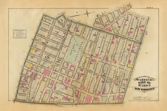 Au moment de sa création, la carte capture l'essence du développement urbain de la fin du XIXe siècle, mettant en évidence des rues clés comme Broadway et la Cinquième Avenue, ainsi que Houston Street, qui forme une sorte de ligne de démarcation au sein des quartiers représentés. L'attention portée aux détails par la carte s'étend à l'inclusion des bâtiments, des bouches d'incendie, des chemins de fer à vapeur et des rues, et même des cours d'eau et des lignes agricoles d'origine qui ont précédé l'expansion de la ville.