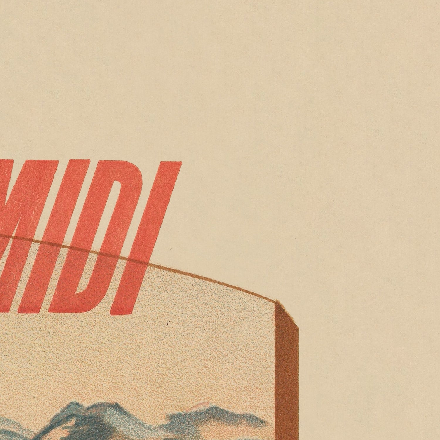 Design and color: This poster’s palette—verdant greens, warm browns, and punctuating reds—captures the contrast between evergreen gardens and alpine peaks. The heroic foreground figure, with broad beret, red cape, and sheepskin gaiters, anchors a composition that flows from lush foliage to distant blue ranges. Typographic drama—especially the oversized “PAU” intertwined with poppies—makes the piece a striking focal point in any room, whether styled with vintage travel decor or clean, contemporary frames.