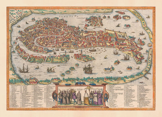 Mappa molto antica di Venezia, 1572 di Georg Braun: Venezia, Murano, Burano, Giudecca, Laguna Veneta