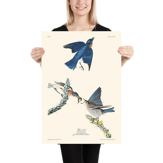 Blue-bird (Tavola 113), pubblicato per la prima volta nel 1827, è una straordinaria illustrazione di un uccello della rinomata serie di John James Audubon, Gli Uccelli d'America. Questa illustrazione cattura il magnifico Bluebird in dettagli squisiti, mostrando i suoi colori vivaci e la sua presenza affascinante.