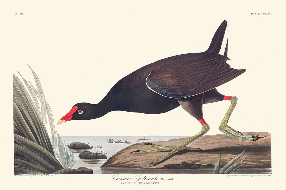 Il significato del "Common Gallinule" risiede non solo nel suo valore artistico ma anche nella dettagliata storia naturale che rappresenta. La rappresentazione di Audubon è stata realizzata con un'attenzione monumentale ai cicli di vita, agli habitat e ai comportamenti del Gallinule, rendendola un'opera sia d'arte che di scienza. La precisa rappresentazione delle abitudini e dell'aspetto dell'uccello aggiunge un livello di autenticità storica, catturando un momento nella ricca biodiversità dell'America del XIX secolo.