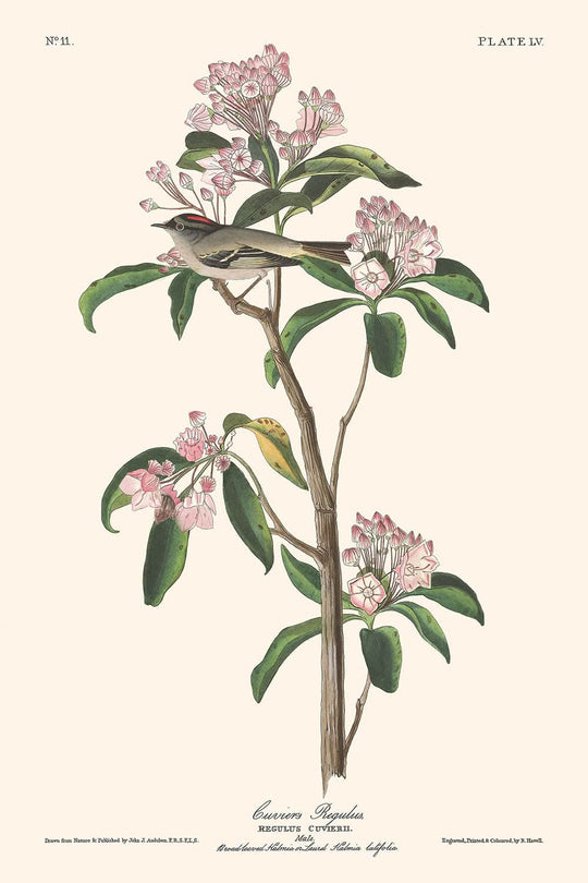 Il Regolo di Cuvier si distingue non solo per il suo soggetto avicolo—al contempo delicato ed elusivo—ma anche per la palette vibrante e i dettagli intricati che Audubon impiegò per catturare questa specie enigmatica. L'opera ha un significato storico, riflettendo i più ampi successi di Audubon sia nell'arte che nell'ornitologia.