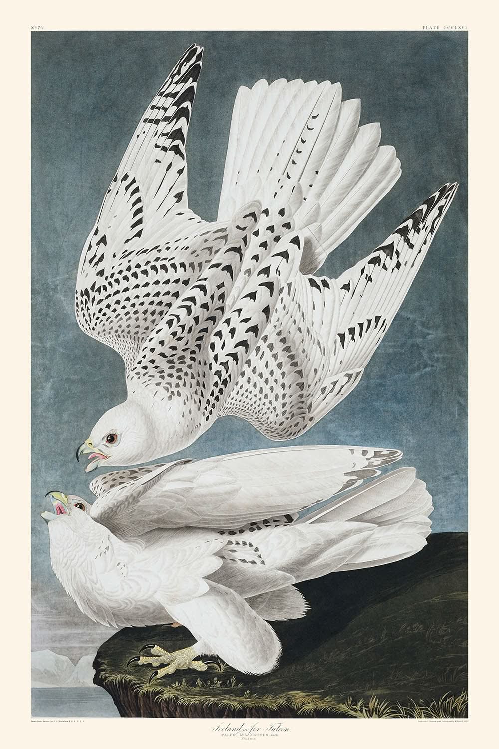 L'Islanda, o Jer Falcon (Piastra 366), creata nel 1827 dal noto naturalista e pittore John James Audubon, cattura il maestoso Jer Falcon in dettagli squisiti. Quest'opera, dalla iconica collezione "Uccelli d'America," è una testimonianza della dedizione di Audubon all'arte aviaristica e all'esplorazione del mondo naturale.