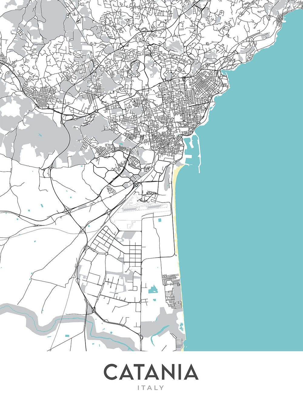 Questa mappa di Catania è una mappa stradale moderna e dettagliata senza etichette, perfetta per coloro che desiderano un pezzo d'arte elegante e informativo per la propria casa o ufficio. La mappa copre una vasta area della città, inclusi i quartieri di Cibali, Borgo, San Berillo, Monte Po, Picanello, Ognina, Barriera del Bosco, San Giovanni li Cuti, Trappeto, Canalicchio, San Giorgio, Nesima, San Nullo, Villaggio Sant'Agata, Librino, Zia Lisa, San Giuseppe la Rena, Borgo Vecchio, Villaggio Santa Maria Goretti e Villaggio Dusmet.