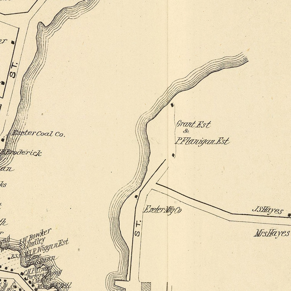 • Historical Significance/Context: The map provides insight into Exeter's development in the late 1800s, reflecting the growth of commerce and changes in land use, offering valuable information for historical studies and urban planning.