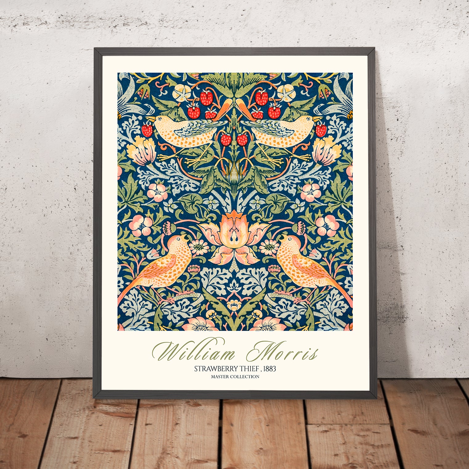 57349691933056::37x50in (94x127cm) / Framed art print / Red:://uniquemaps.net/cdn/shop/files/strawberrythiefwilliammorrislarger1883BottomRed20x16lowres.jpg?v=1770167988::0.8,