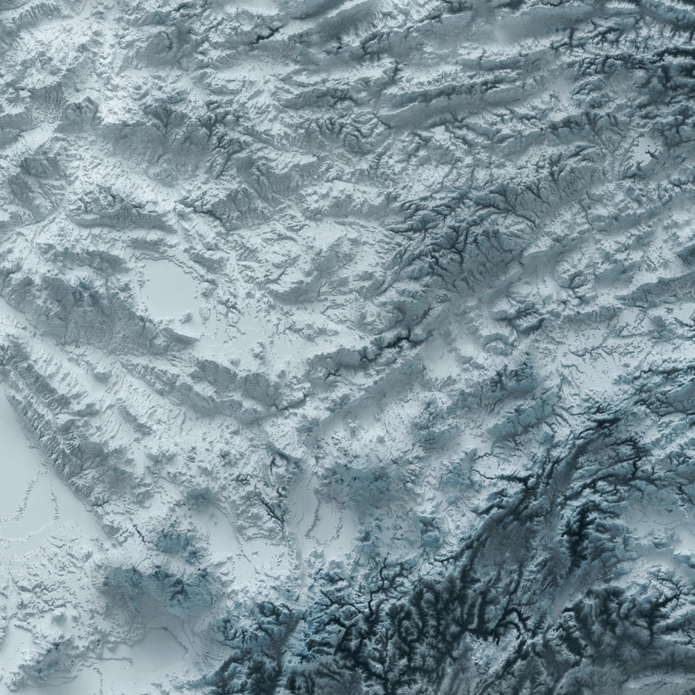 Le nostre stampe a rilievo ombreggiato utilizzano dati topografici ad altissima risoluzione e un processo segreto di rendering 3D per creare l’illusione di un terreno in rilievo — come se le montagne stessero per sollevarsi direttamente dalla pagina. Nessuna etichetta, nessun confine, nessuna distrazione. Solo la forma pura del territorio, resa viva in uno stile pulito e moderno.