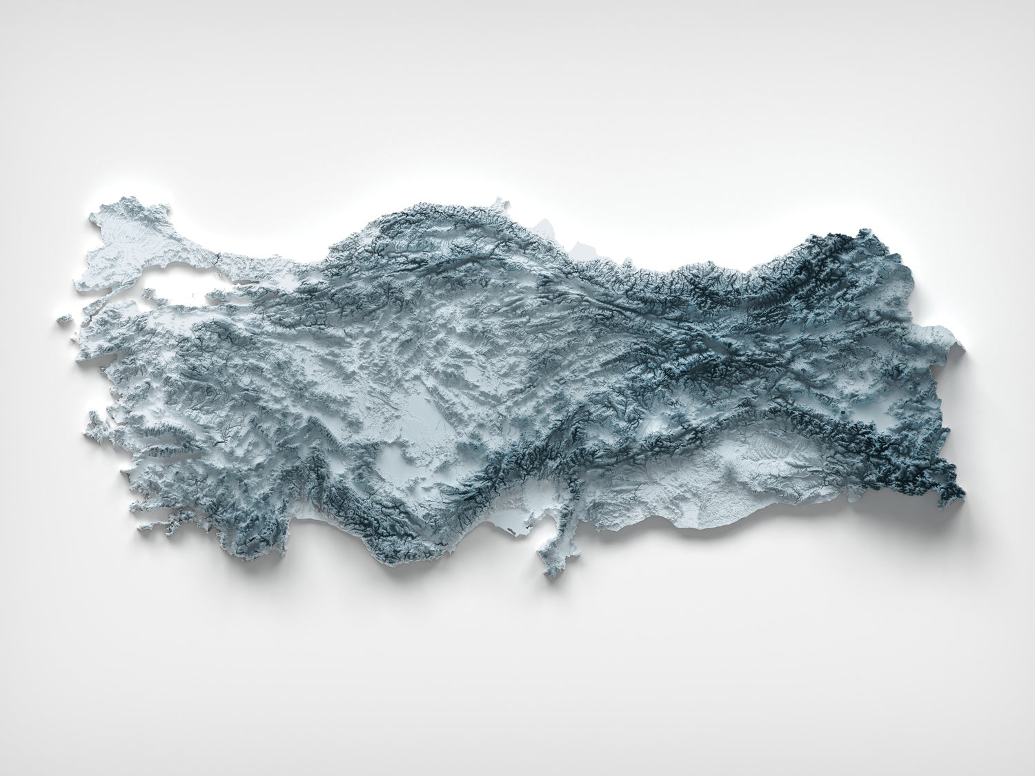 Che viviate lungo il Bosforo, all’ombra dell’Erciyes, tra gli agrumeti della Çukurova o sui versanti piovosi del Mar Nero, qui riconoscerete la vostra Turchia. Luce e ombra raccontano tutta la storia — le cime isolate brillano, i corridoi fluviali si oscurano e l’ampio sviluppo di altopiani e montagne si legge come un romanzo di rilievo. È un modo sobrio ed elegante per celebrare un paesaggio in cui i continenti si incontrano e il suolo stesso porta la memoria delle montagne che si innalzano e dei fiumi che trovano la via verso il mare.