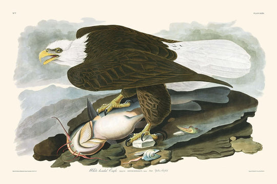 L'uso dinamico del colore e della composizione da parte di Audubon in questo pezzo dà vita all'eleganza formidabile dell'aquila. Il contrasto tra il bianco candido della testa dell'aquila e il profondo marrone umber delle sue piume esalta la sua presenza nobile. Questa straordinaria rappresentazione è sia un tributo alla maestà dell'aquila che un'aggiunta squisita a qualsiasi spazio, ispirando stupore e ammirazione tra gli spettatori.