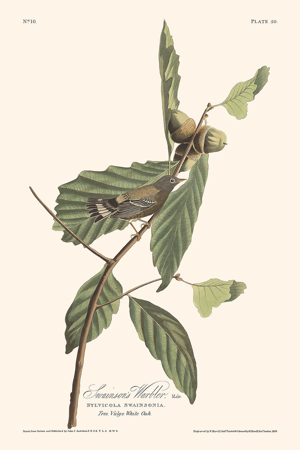 "Black & Yellow Warbler (Plate 50)" is distinguished by its vibrant use of color and intricate details. The black, yellow, and grey tones depict the bird’s elegant plumage, while its animated motions reflect a scene of natural and lively beauty. Audubon's unique ability to merge scientific precision with artistic flair results in a piece that appeals to both art lovers and nature enthusiasts. Whether observed for its stunning plumage or its ecological significance, this Warbler is a captivating piece for any interior.