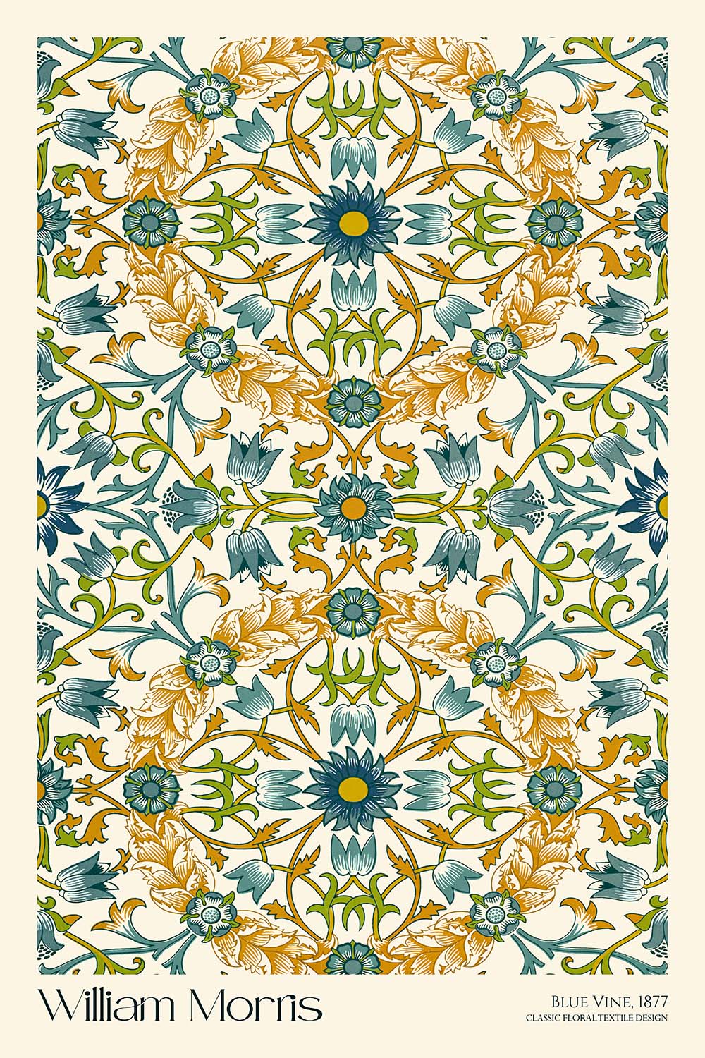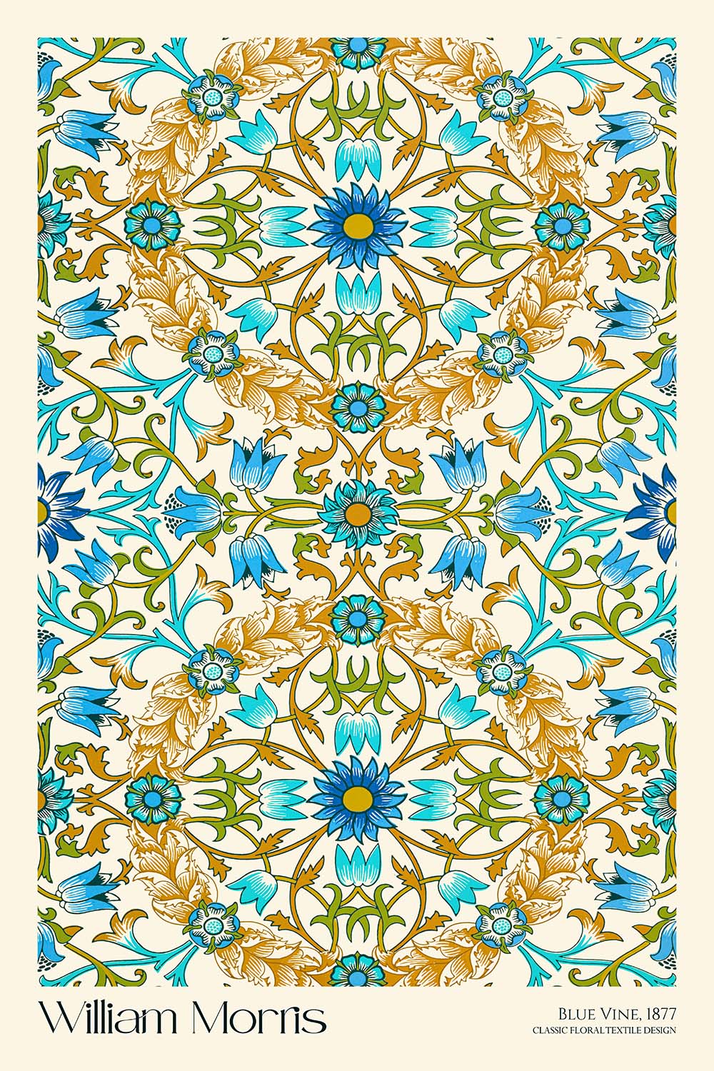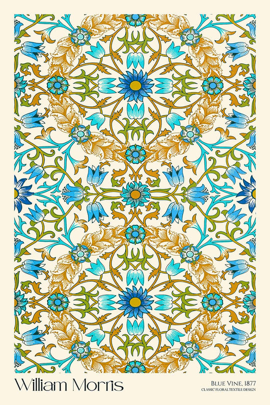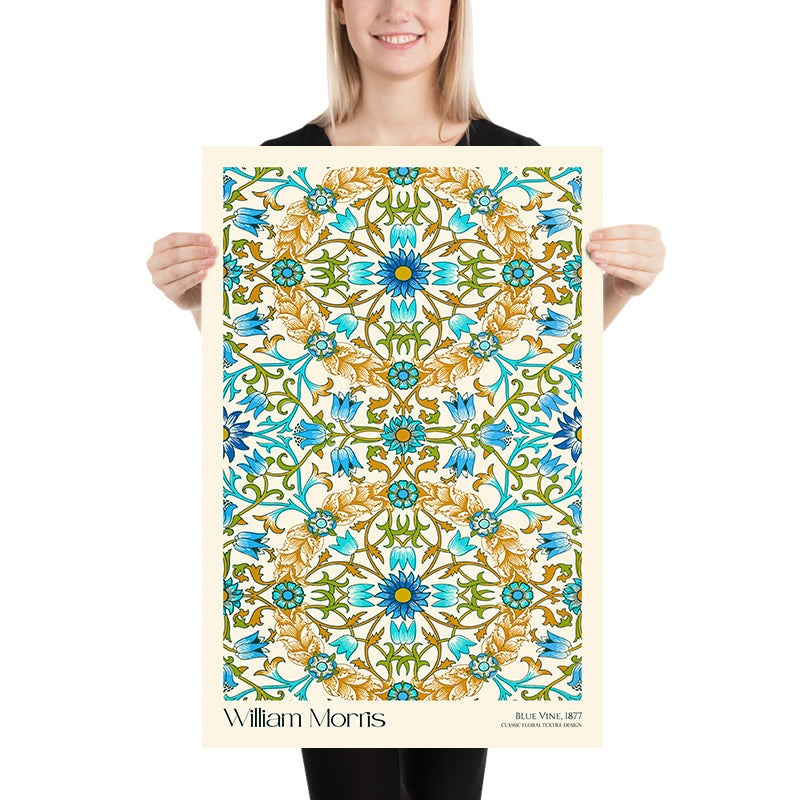 If you wish, we can include the artist’s name and the pattern title—“William Morris · Blue Vine”—tastefully placed above or below the artwork. It’s a simple way to personalize the piece, anchor a gallery wall, or create a curatorial feel in your space.