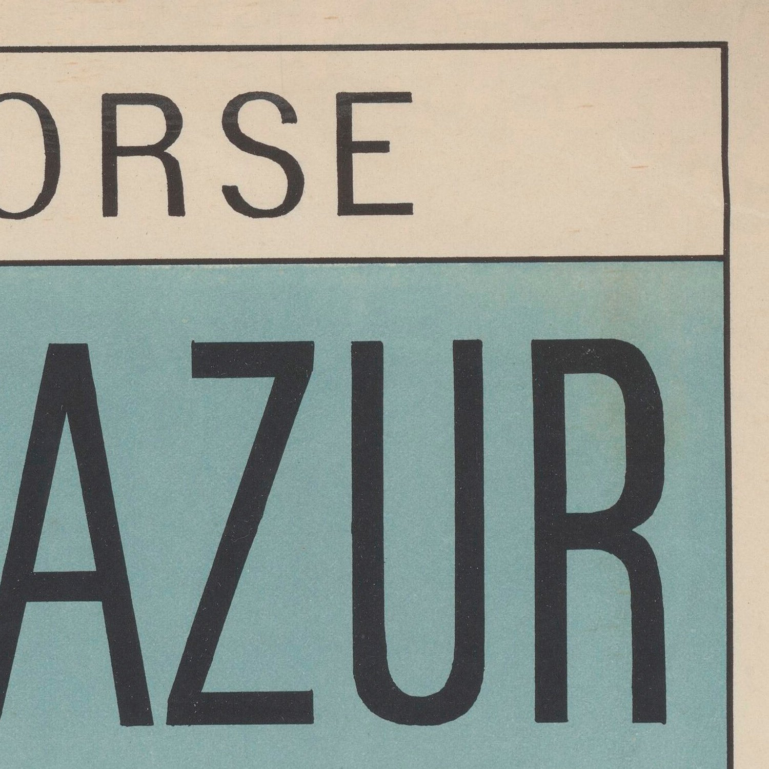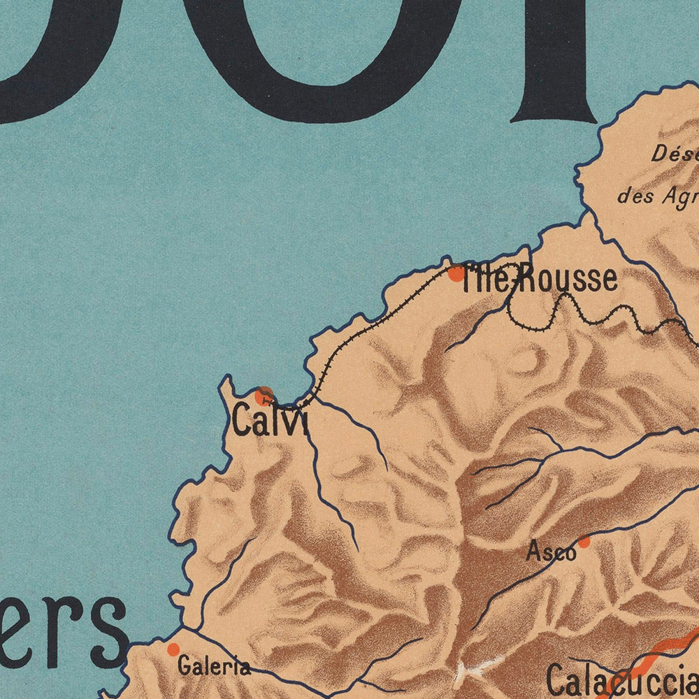 The subject is irresistible: a 1920s call to sail from the sunlit Riviera to Corsica’s rugged coasts and mountain villages. The composition celebrates connection—red route lines and circular arcs radiate from the island, underscoring the period’s expanding leisure network and the ease of island-hopping. The nod to Napoleon’s birthplace adds a layer of historical intrigue, appealing to travelers who cherish both natural beauty and the narratives that define place.