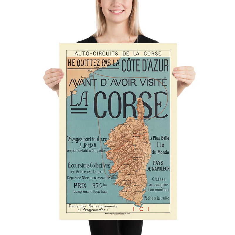 Corsica Travel Poster: Don't Leave The French Riviera Without Visiting... 1922