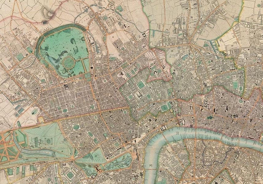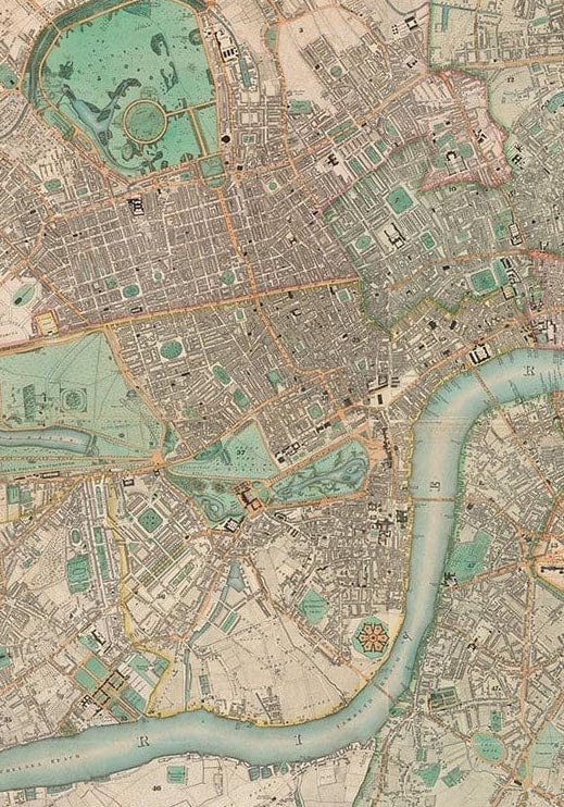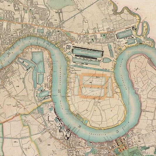 Create your own custom, unique version of one of the finest old, colour maps of London: C & J Greenwood's 1830 Map of London. The map was originally published in six sheets, based on surveys between 1824 and 1826. The Greenwoods did their own surveys of London - to compete with the Ordnance Survey!