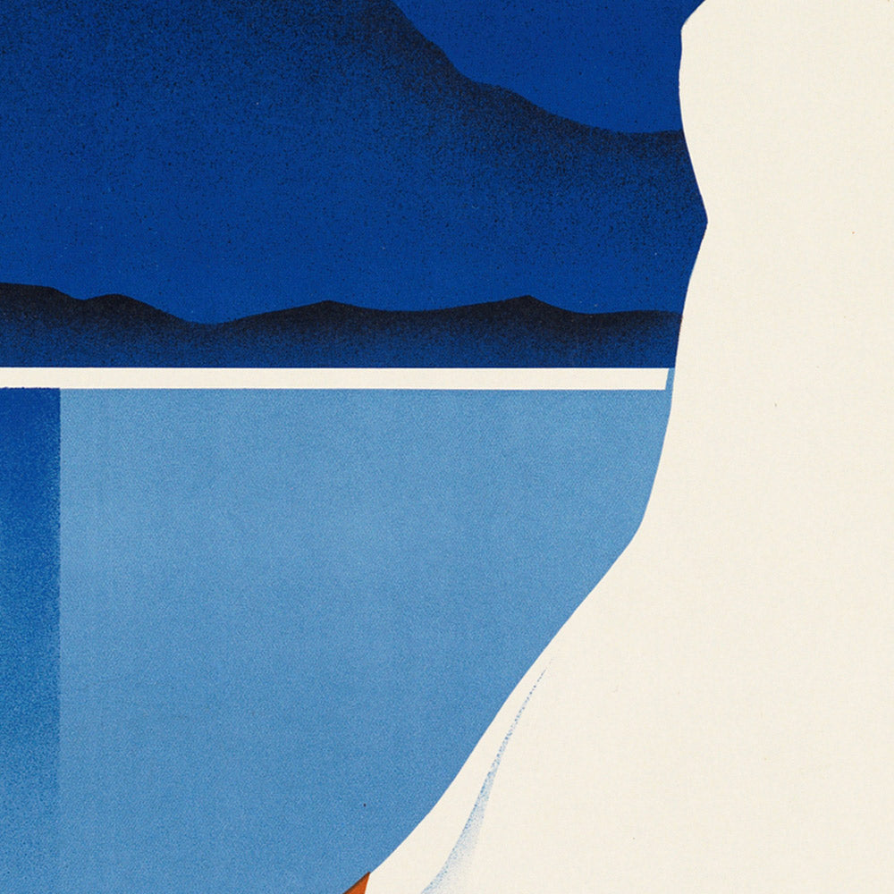 About the creator: while the artist’s name has been lost to history, the designer’s hand is unmistakably of the Art Deco movement, a period when European tourism boards and railway companies often commissioned bold, modern posters to entice travelers. Anonymous studio artists and lithographic houses perfected a visual language of clarity, speed and elegance—qualities on vivid display here. This poster stands within that lineage, distilling place and mood into streamlined forms that read instantly from a distance.