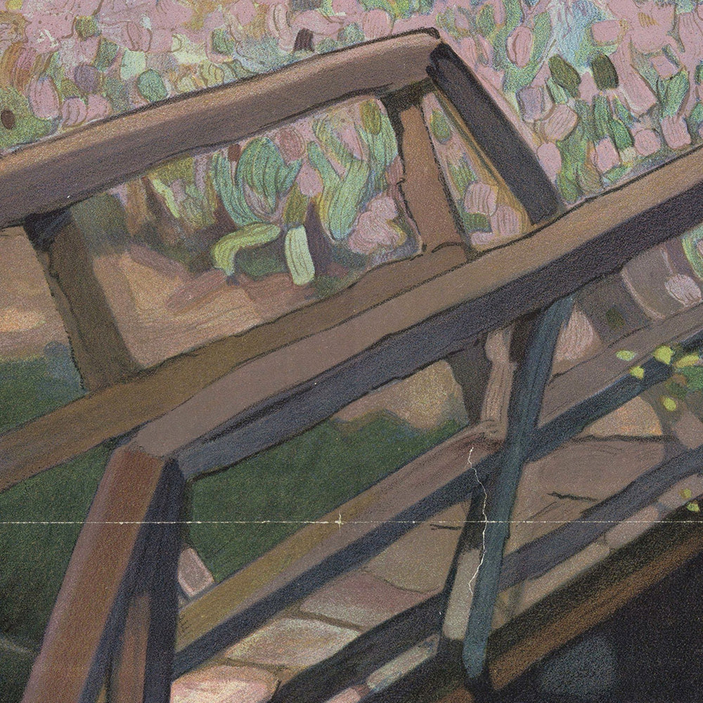 The subject is irresistible: Holland’s spring bulb fields, made newly accessible by rail. The poster speaks to the great seasonal ritual of riding north to witness the Bollenstreek, the “bulb region” between Haarlem and Leiden, when long plots of flowering tulips (Tulipa spp.) unfurl like ribbons of color across the reclaimed land. By the turn of the century, affordable rail fares and efficient timetables transformed this blooming landscape into a must-see excursion—an early form of what we would now call floral tourism.