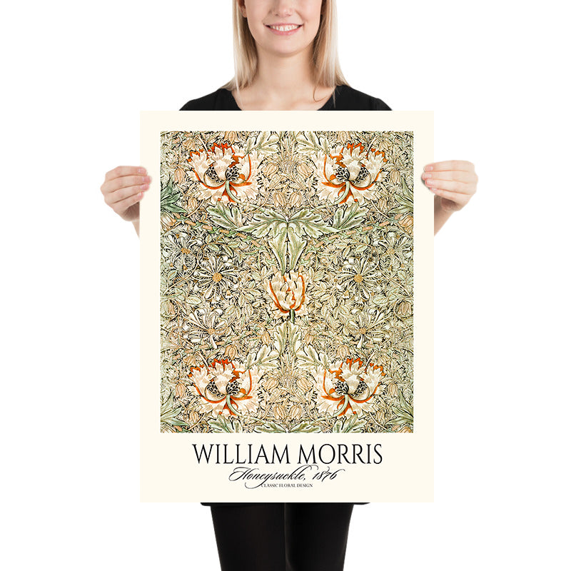 If you enjoy typographic details, we can include the artist’s name and pattern title—“William Morris, Honeysuckle”—tastefully placed above or below the artwork. This can add a curatorial flourish, unify a gallery wall, or help tell a visual story alongside other Arts & Crafts prints.