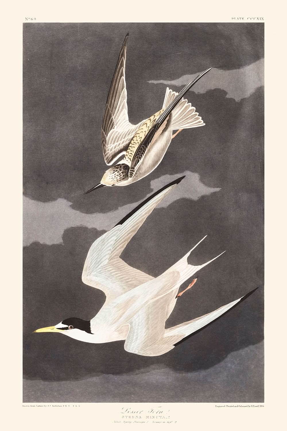 John James Audubon, celebrated for his detailed and lifelike depictions of American birds, brings the Lesser Tern to life with an astonishing level of detail. The artwork stands out as a testament to Audubon's dedication to ornithology and his exceptional skills in capturing the essence of his subjects.