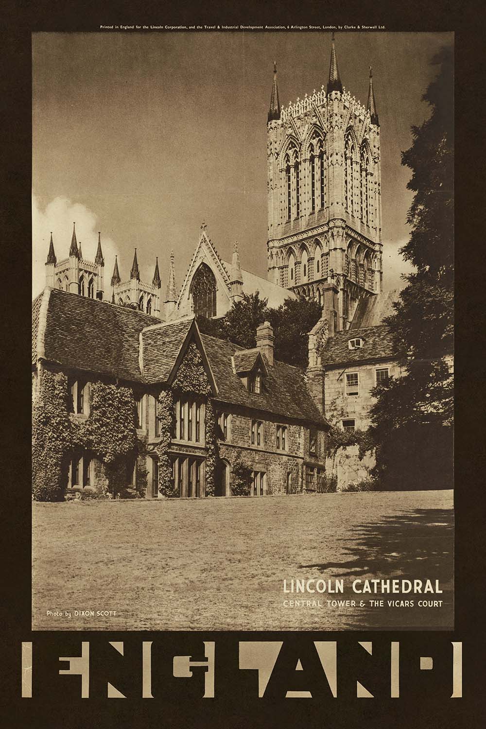 Lincoln Travel Poster: Lincoln Cathedral Central Tower & the Vicars' Court by Dixon Scott