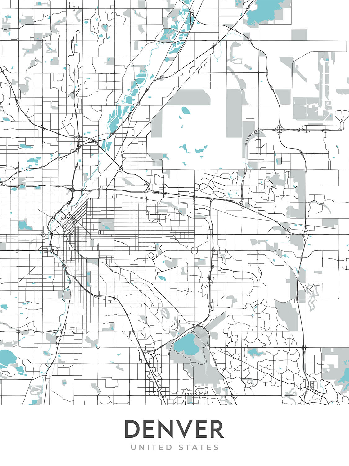 This original creation from The Unique Maps Co. stands out with its distinctive cartography, modern design, and carefully chosen colorways. Each line, curve, and hue has been thoughtfully considered to create a visually captivating representation of Denver's urban landscape. The map is a testament to the artistry and craftsmanship of our skilled cartographers, making it a truly one-of-a-kind piece of art.