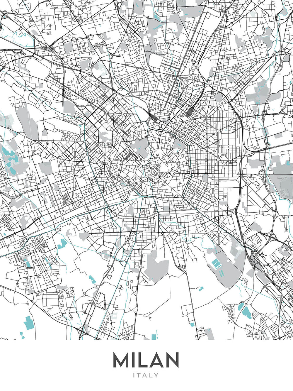 Modern City Map of Milan, Italy: Duomo, Galleria, Castello, Navigli, Brera